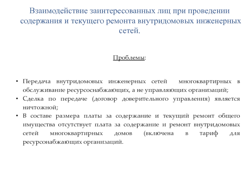 Передача внутридомовых инженерных сетей многоквартирных в обслуживание ресурсоснабжающих, а не управляющих организаций;