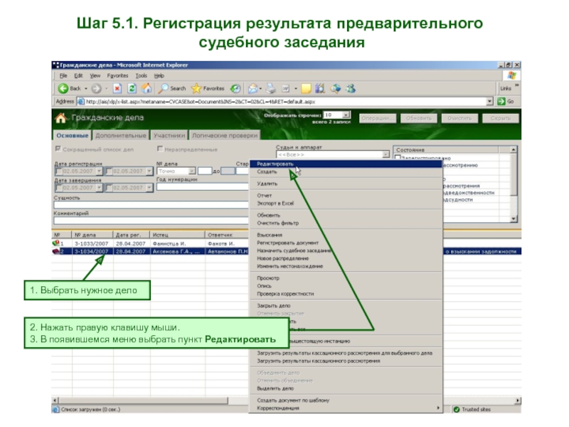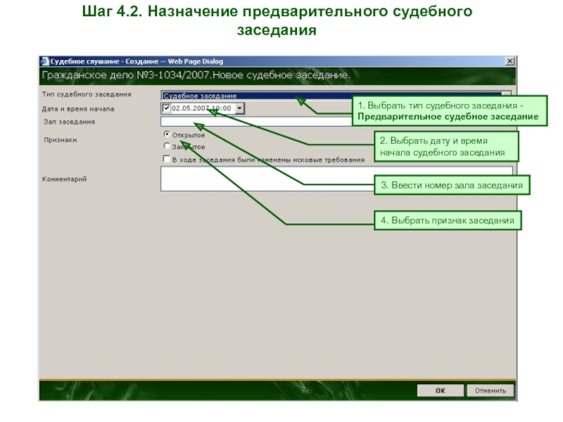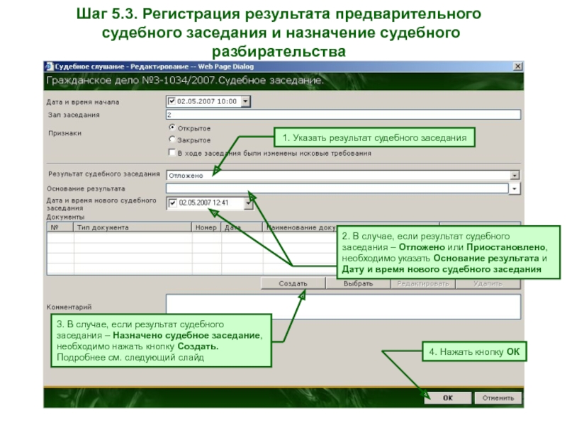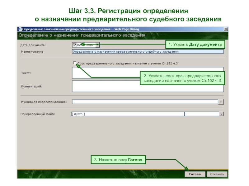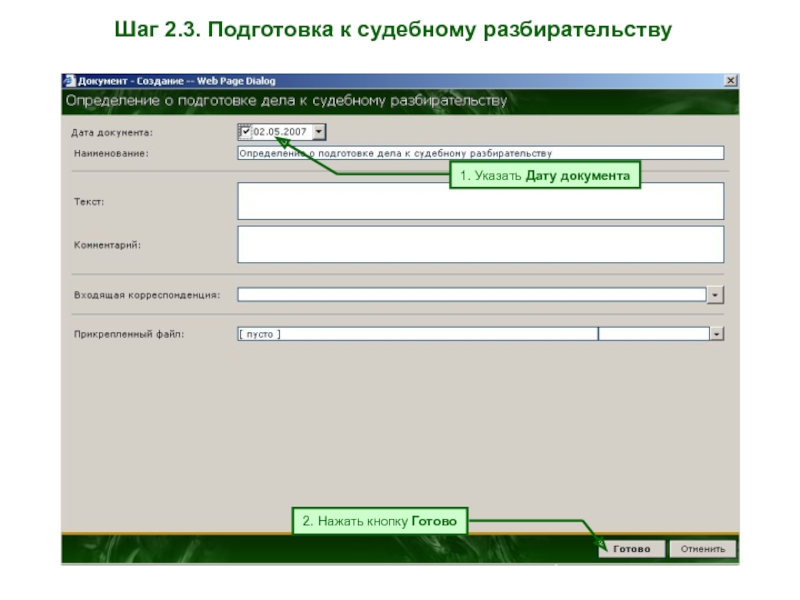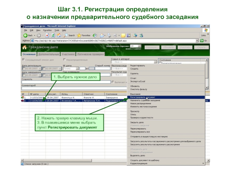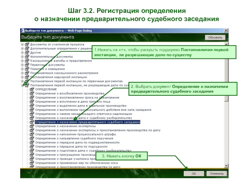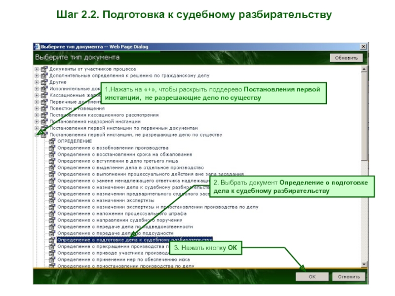 2. Выбрать документ Определение о назначении предварительного судебного заседания