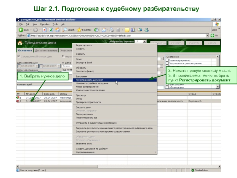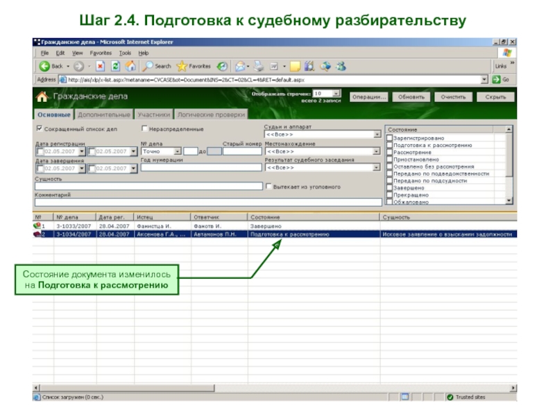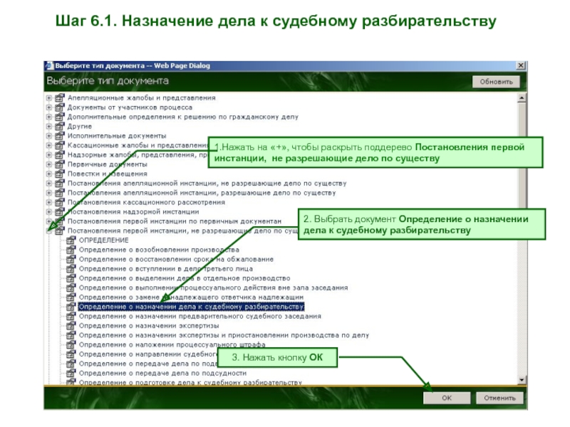 2. Выбрать документ Определение о назначении дела к судебному разбирательству