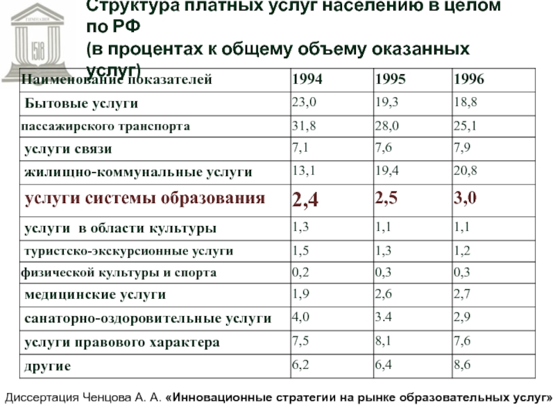 Диссертация Ченцова А. А. «Инновационные стратегии на рынке образовательных услуг»