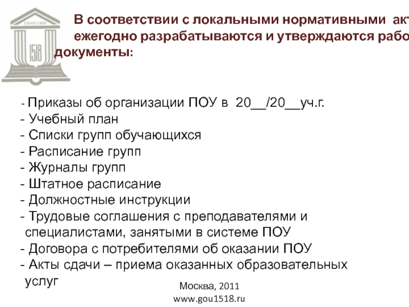 Приказы об организации ПОУ в 20__/20__уч.г.