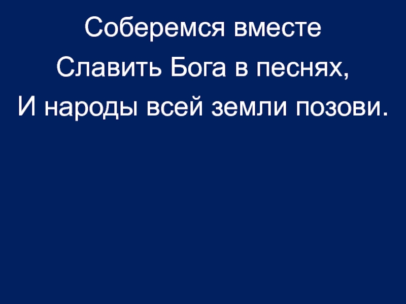 Соберемся вместе Славить Бога в песнях, И народы всей земли позови. презентация