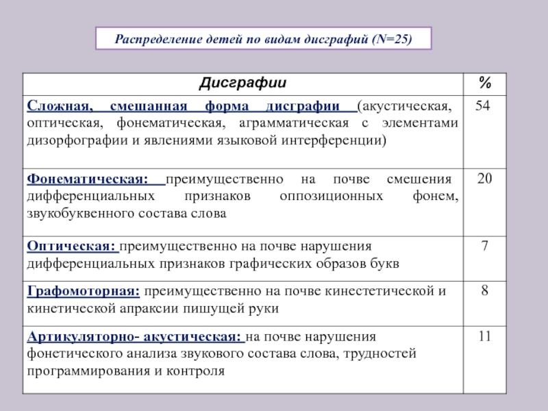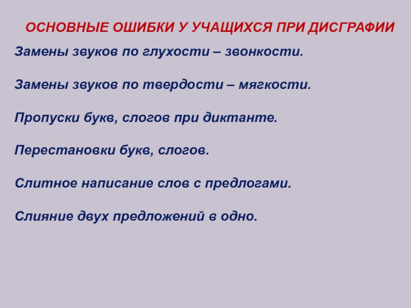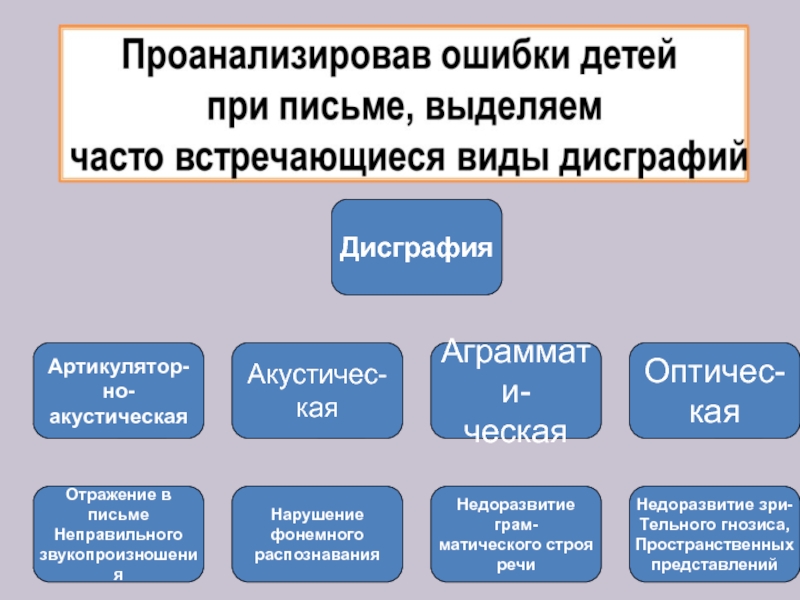 Проанализировав ошибки детей при письме, выделяем часто встречающиеся виды дисграфий: