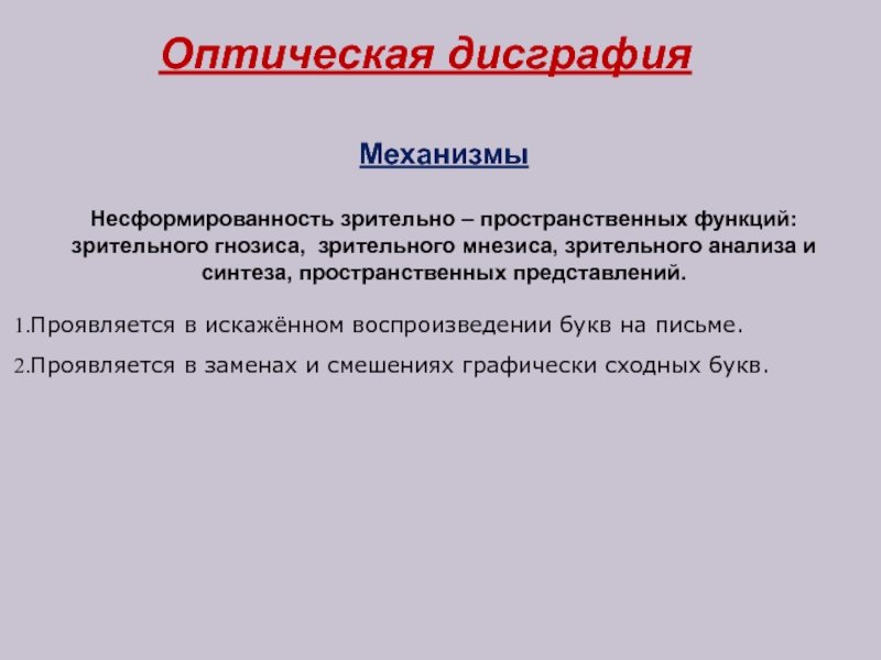 5.Несформированность зрительно- пространственных функций.