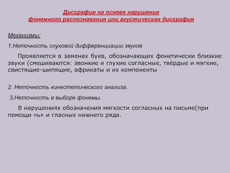 2.На основе нарушения фонемного распознавания или акустическая.