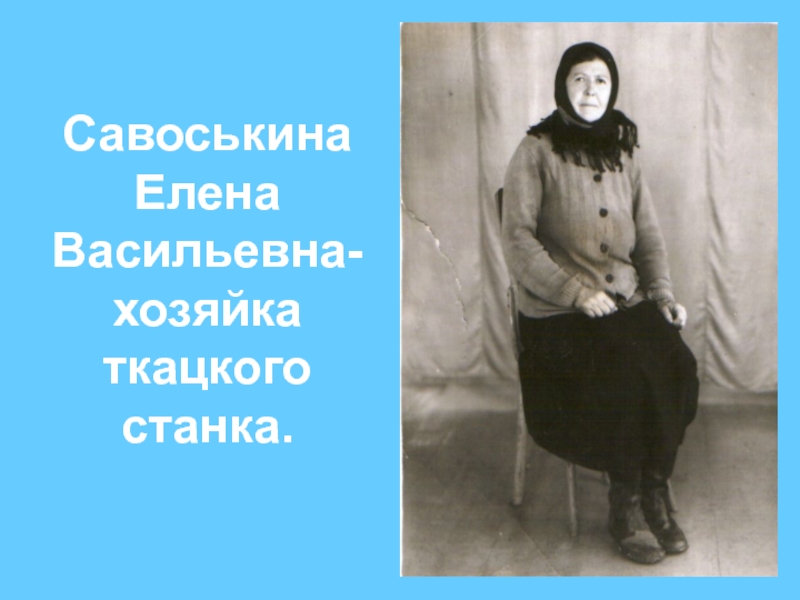 Слайд 3Савоськина Елена Васильевна- хозяйка ткацкого станка.