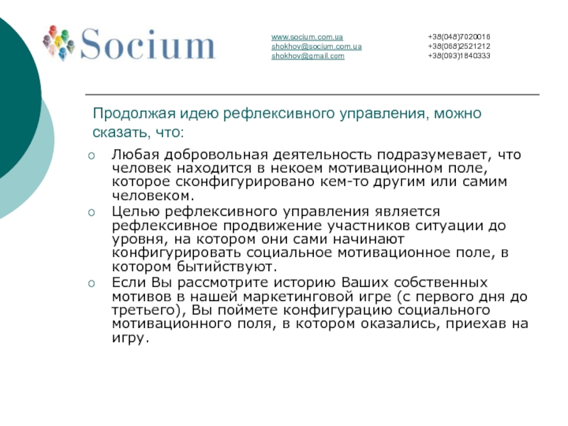 Социальное мотивационное поле может быть сконфигурировано таким образом, чтобы управляемые хотели двигаться в направлении, нужном управленцу.