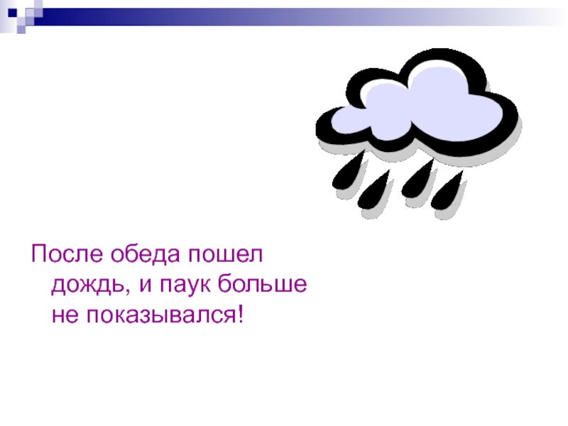 Слайд 13После обеда пошел дождь, и паук больше не показывался!