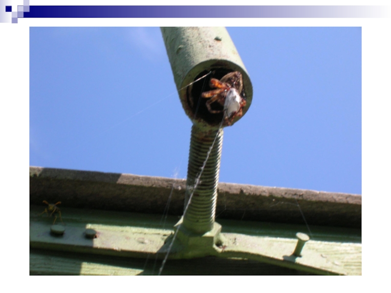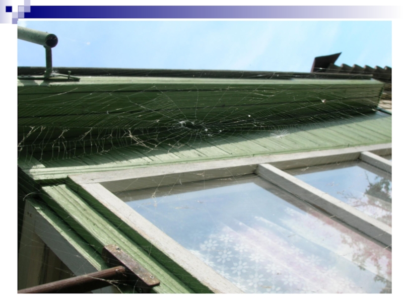Слайд 7Хозяина паутины не было видно. Я удивился такому соседству, ведь пауки-крестовики