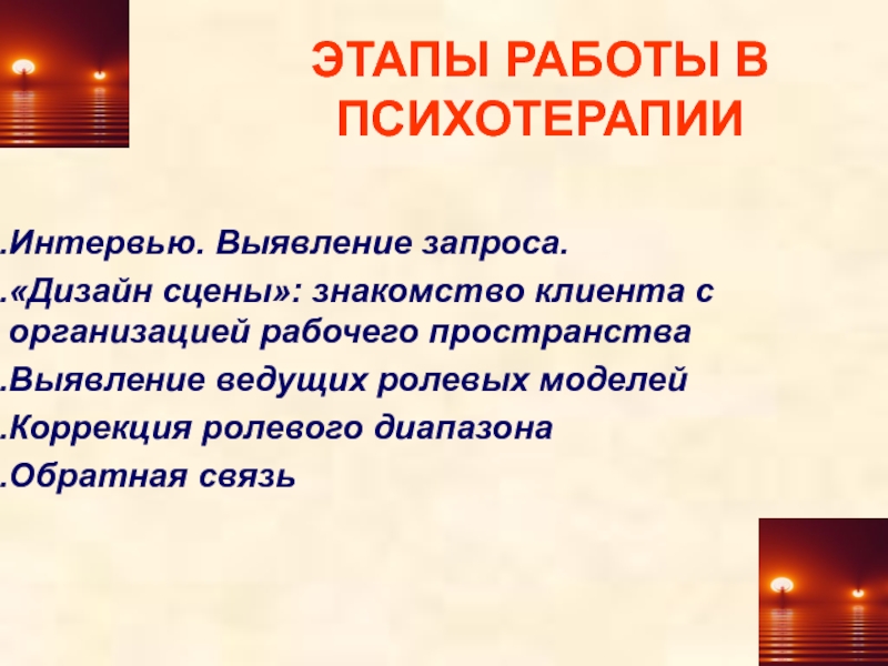 Слайд 11ЭТАПЫ РАБОТЫ В ПСИХОТЕРАПИИ