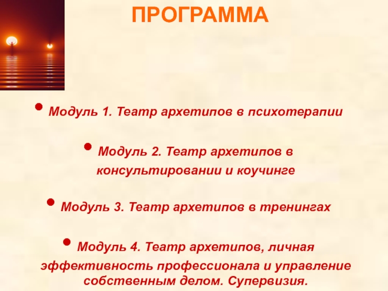 Модуль 4. Театр архетипов, личная эффективность профессионала и управление собственным делом. Супервизия.
