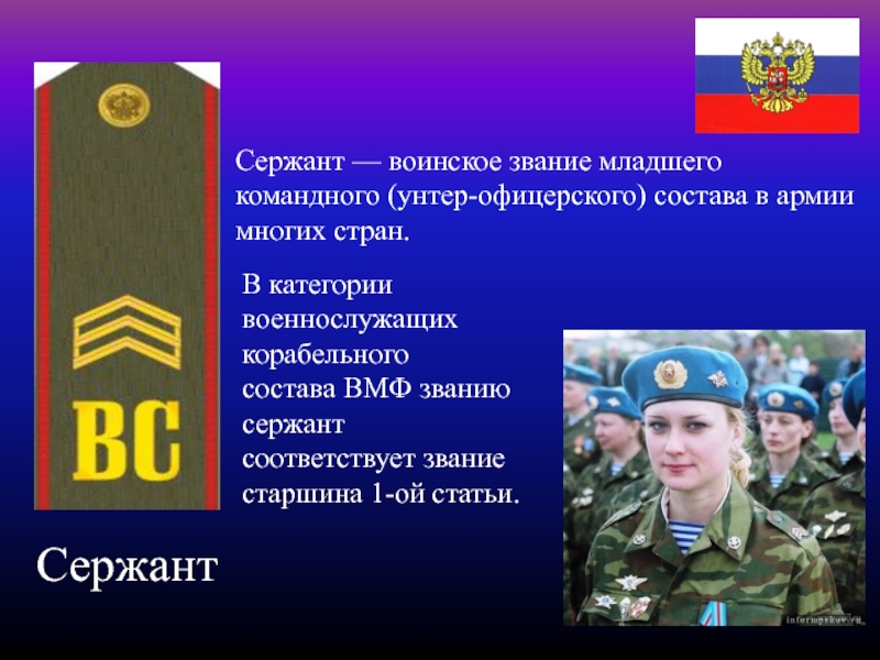 состава ВМФ званию сержант