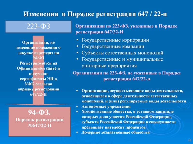 Организации по 223-ФЗ, указанные в Порядке регистрации 647/22-Н