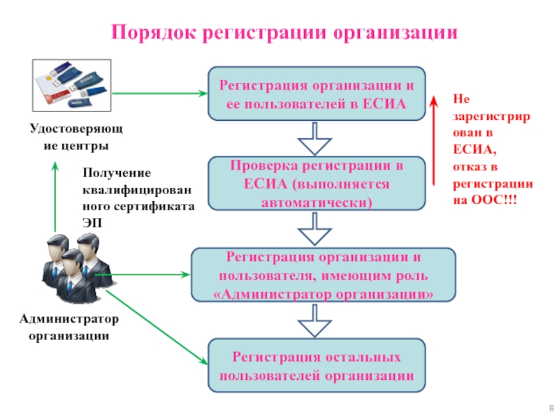 Слайд 31Регистрация организации и ее пользователей в ЕСИА в соответствии с инструкцией