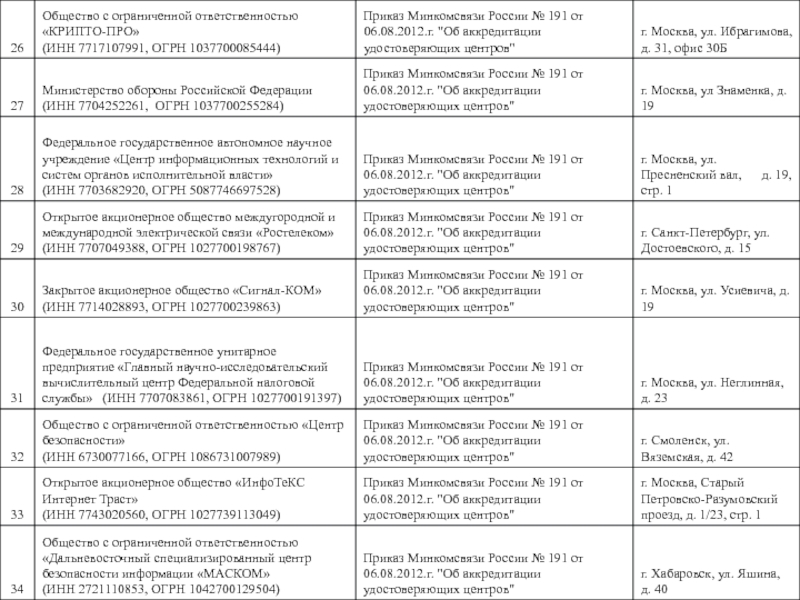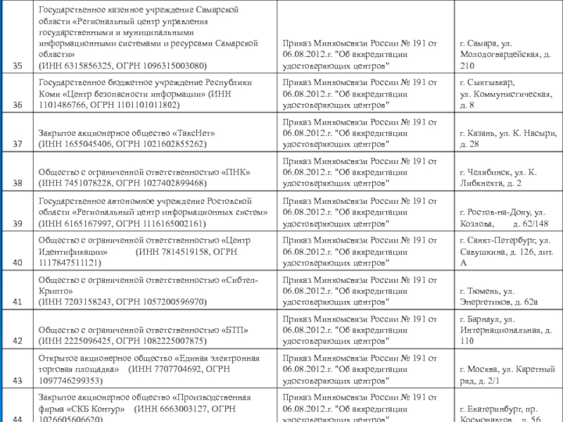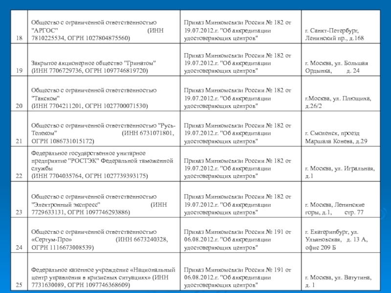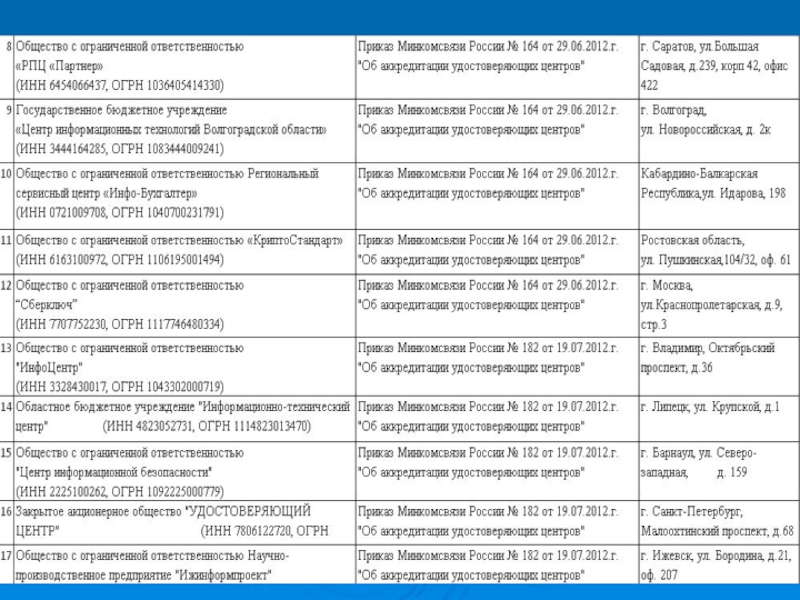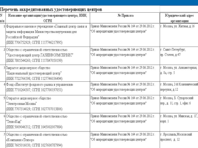 Слайд 20Перечень аккредитованных удостоверяющих центров