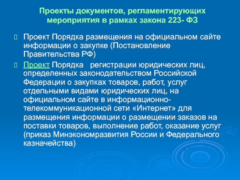 Слайд 6Проекты документов, регламентирующих мероприятия в рамках закона 223- ФЗ