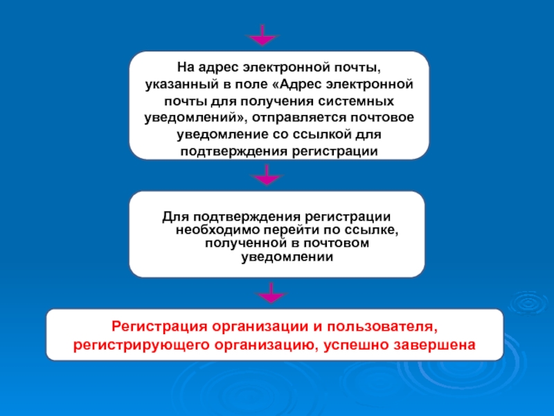 адрес электронной почты, указанный в поле «Адрес электронной почты для получения системных уведомлений», отправляется почтовое уведомление со ссылкой для подтверждения регистрации