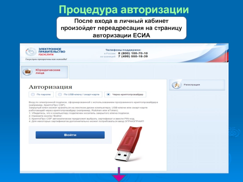 Слайд 42После выполнения идентификации и аутентификации пользователя в ЕСИА на экране отобразится