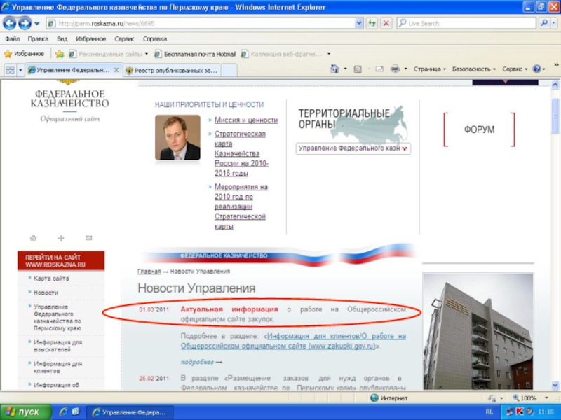 Слайд 26 Сайт Управления Федерального казначейства по Пермскому