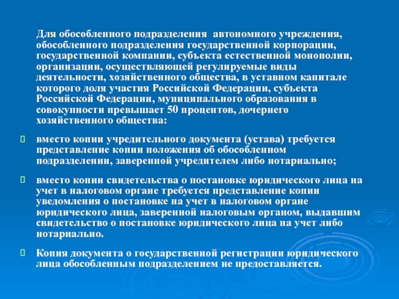 Слайд 52 Для обособленного подразделения автономного учреждения, обособленного подразделения государственной