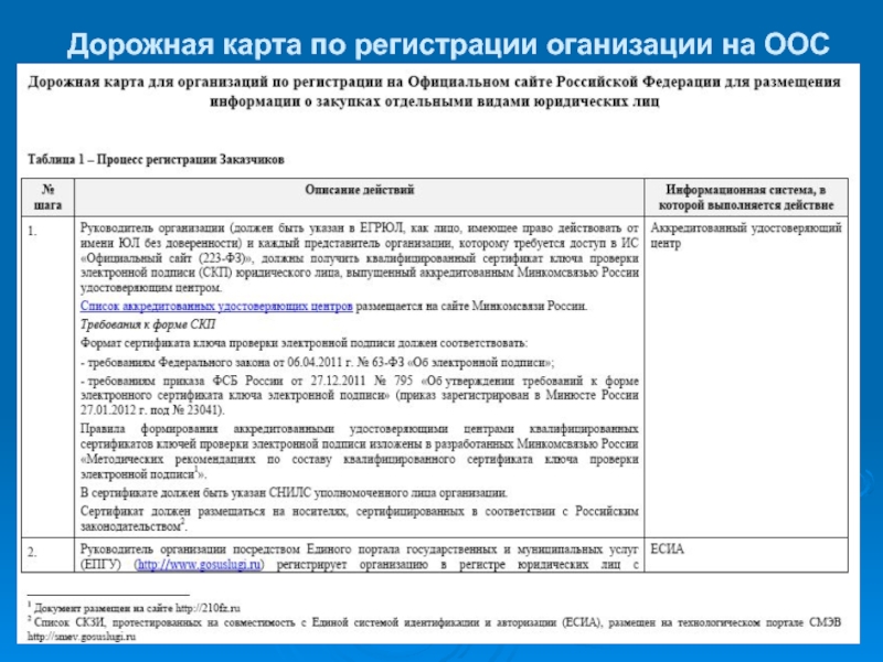 Слайд 9Дорожная карта по регистрации оганизации на ООС