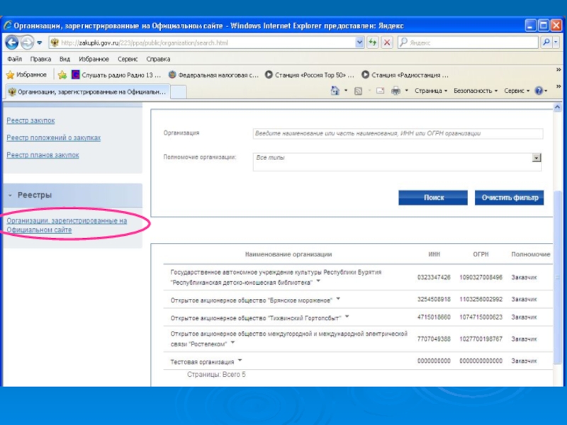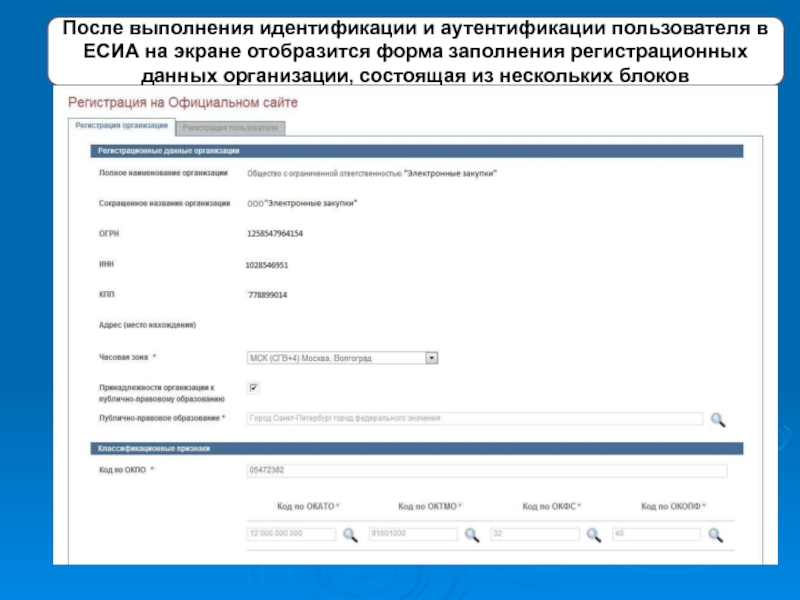 Слайд 40Регистрация юридического лица на Официальном Общероссийском сайте в рамках закона 223-ФЗ