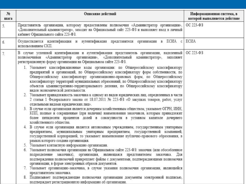 Слайд 7Инструкция по регистрации юридических лиц и уполномоченных сотрудников в единой системе