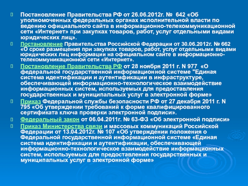 Слайд 5Постановление Правительства РФ от 26.06.2012г. № 642 «Об уполномоченных федеральных органах