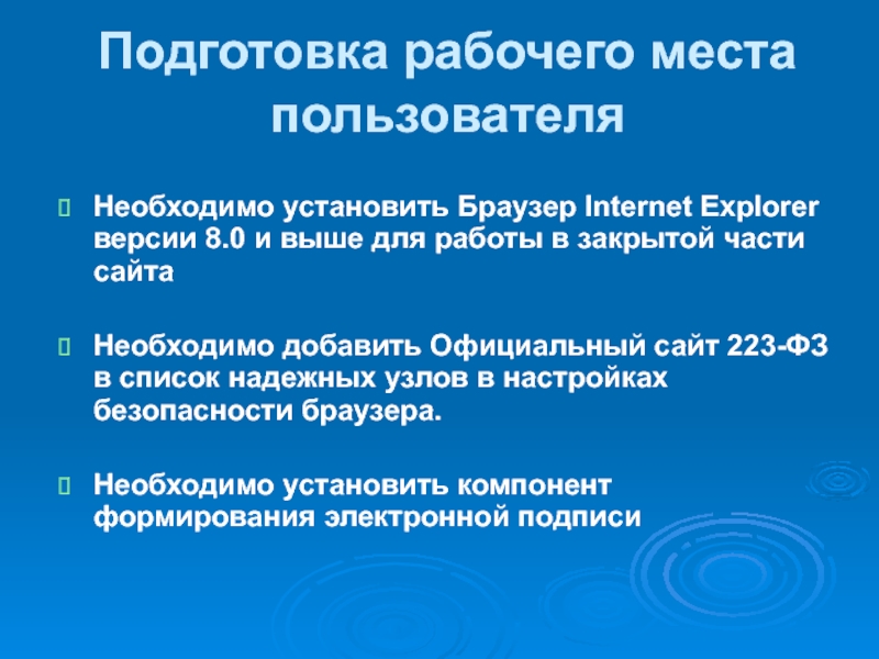 Необходимо добавить Официальный сайт 223-ФЗ в список надежных узлов в настройках безопасности браузера.