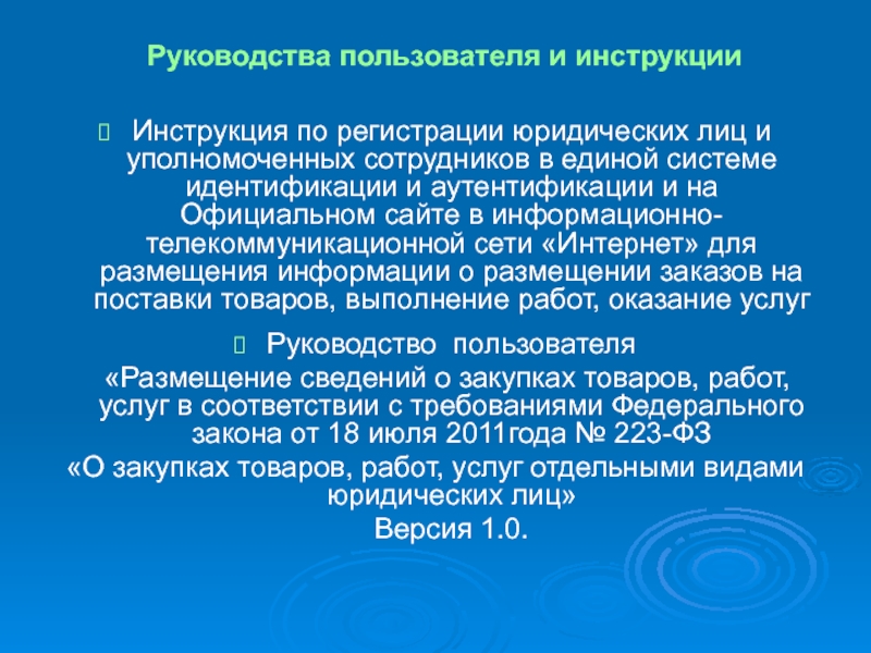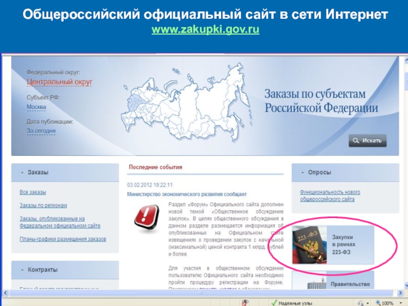 Слайд 1Федеральный закон Российской Федерации от 18.07.2011 № 223-ФЗ