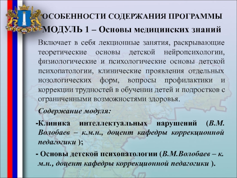 Основы детской психопатологии (В.М.Волобаев – к.м.н., доцент кафедры коррекционной педагогики ).
