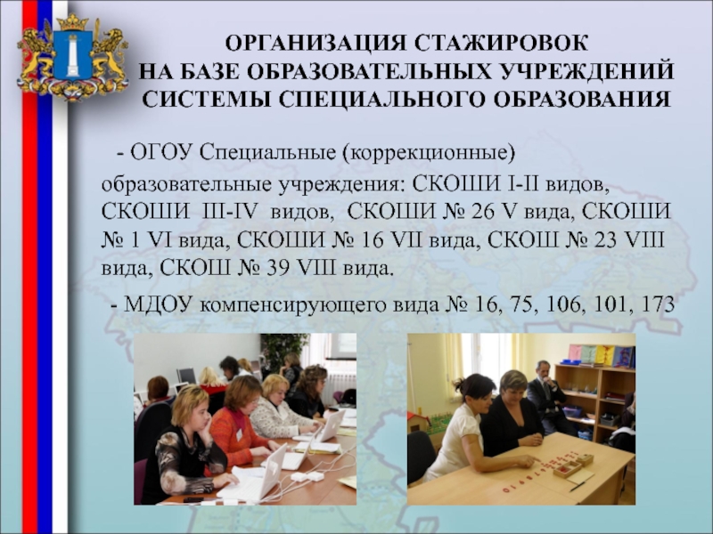 (коррекционные) образовательные учреждения: СКОШИ I-II видов, СКОШИ III-IV видов, СКОШИ № 26 V вида, СКОШИ № 1 VI вида, СКОШИ № 16 VII вида, СКОШ № 23 VIII вида, СКОШ № 39 VIII вида.