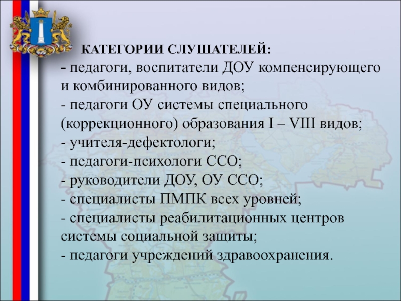 Слайд 10КАТЕГОРИЯ СЛУШАТЕЛЕЙ: