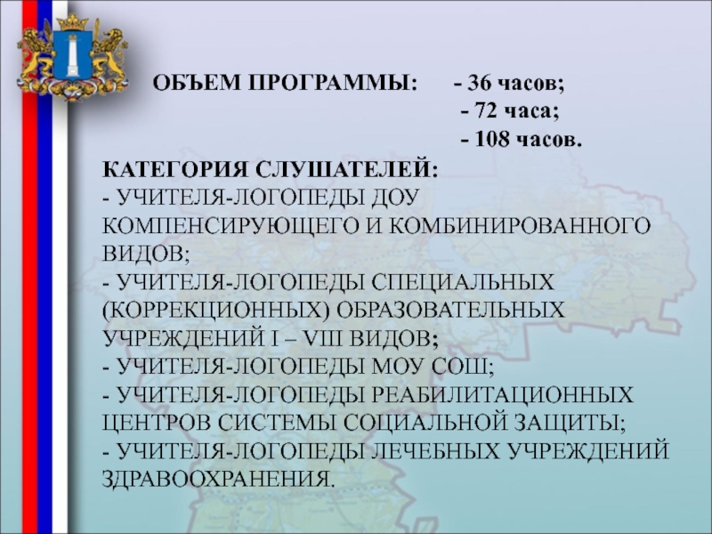 Слайд 7ОБЪЕМ ПРОГРАММЫ: - 36 ЧАСОВ;