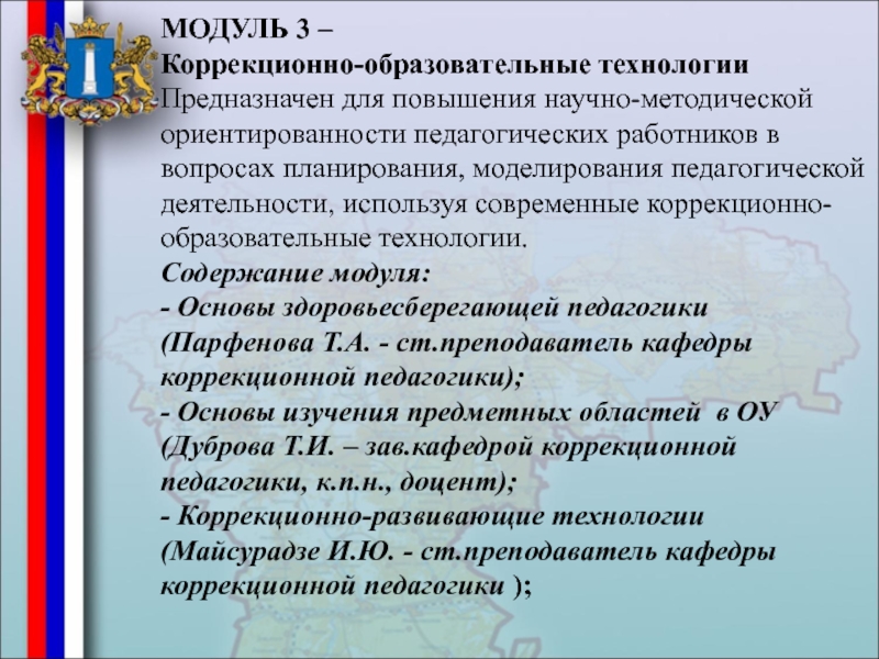 (Дуброва Т.И. – зав.кафедрой коррекционной педагогики, к.п.н., доцент);