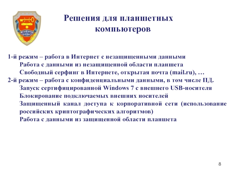 - Комплекс программных решений для защиты планшетных компьютеров.