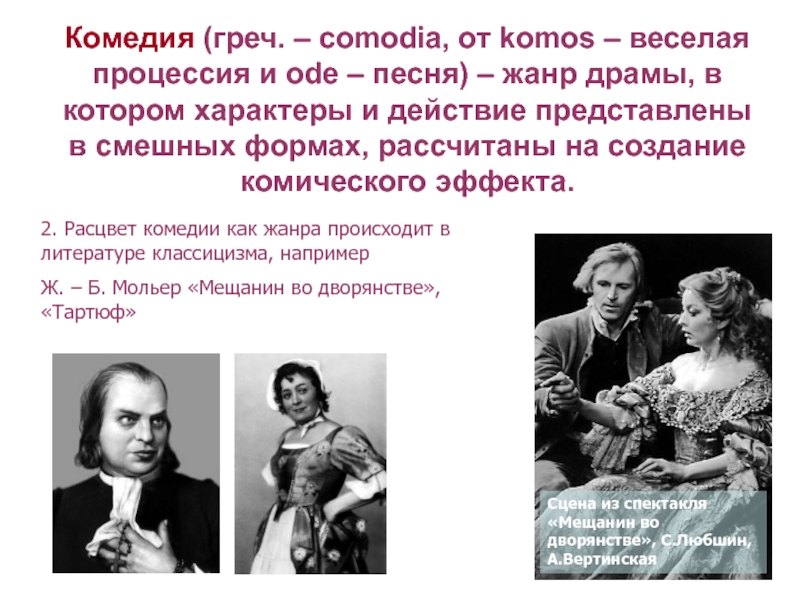 2. Расцвет комедии как жанра происходит в литературе классицизма, например