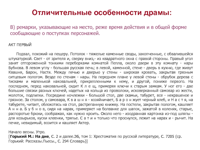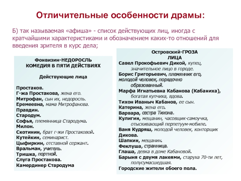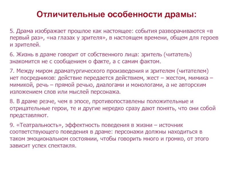 Отличительные особенности драмы: