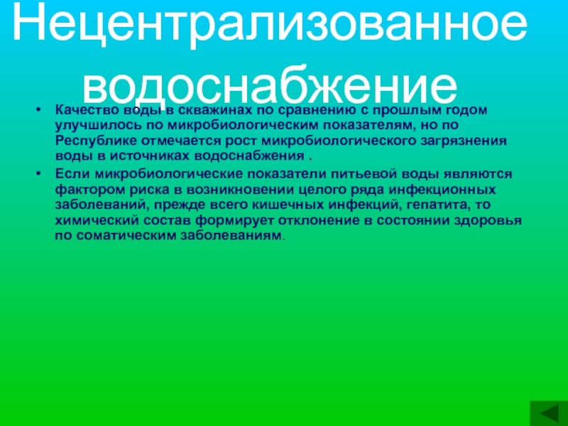 Основной причиной высокого уровня загрязнения питьевой воды в течение последних лет является их крайне неудовлетворительное техническое состояние.