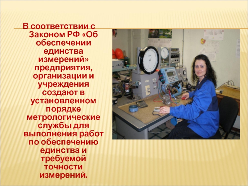 Слайд 3В соответствии с Законом РФ «Об обеспечении единства измерений» предприятия, организации