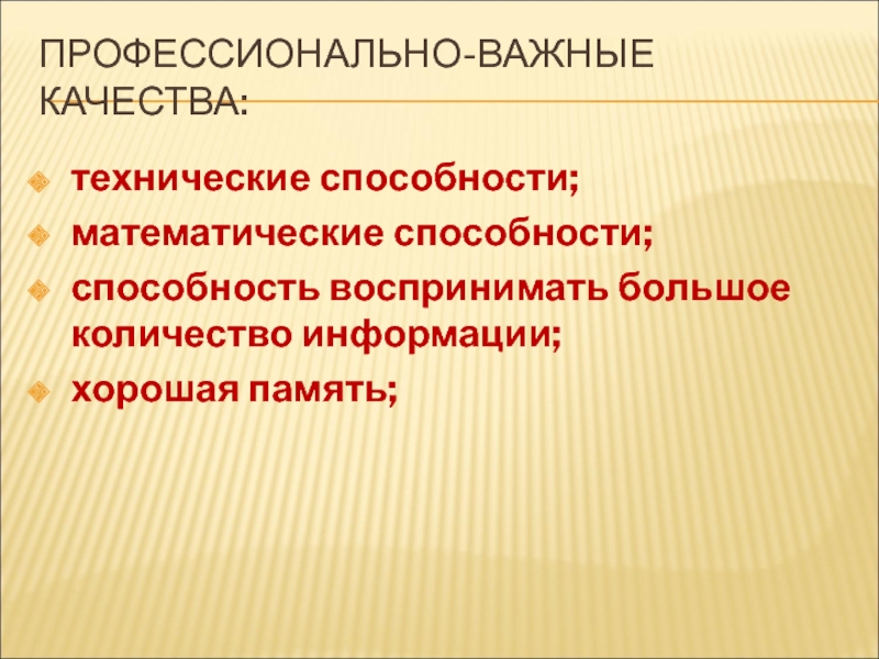 Слайд 9ПРОФЕССИОНАЛЬНО-ВАЖНЫЕ КАЧЕСТВА: