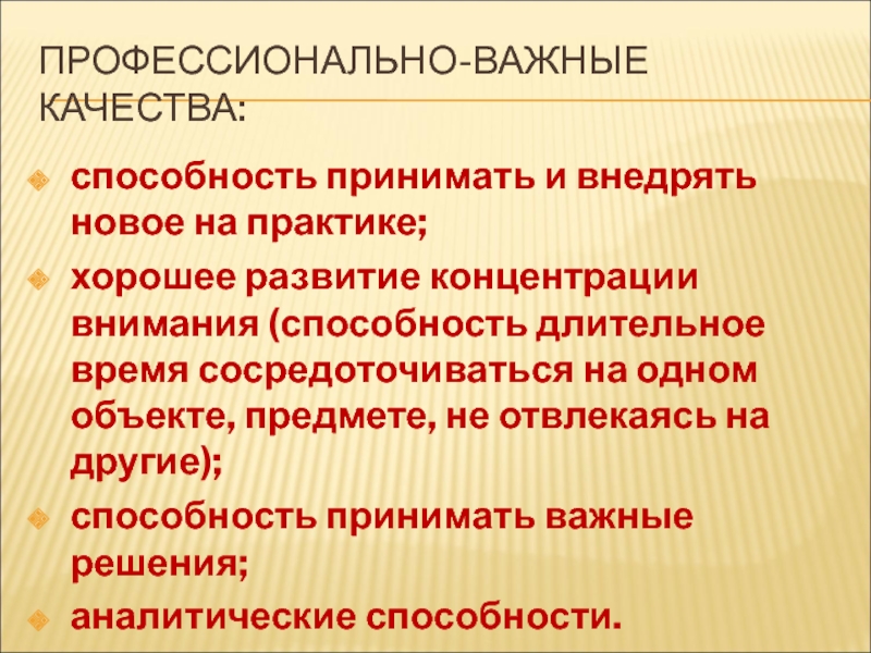 Слайд 8ПРОФЕССИОНАЛЬНО-ВАЖНЫЕ КАЧЕСТВА: