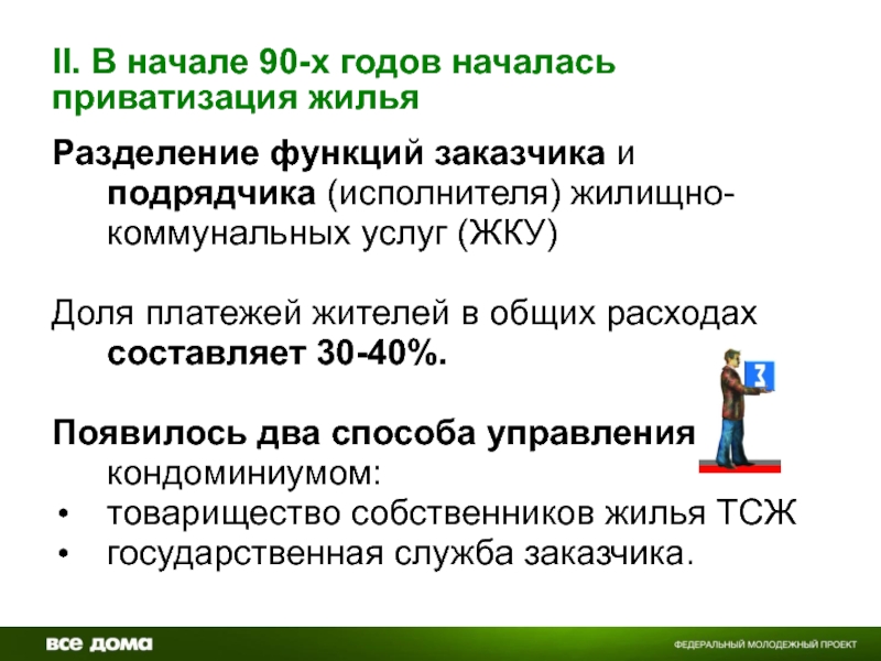 Слайд 8II. В начале 90-х годов началась приватизация жилья