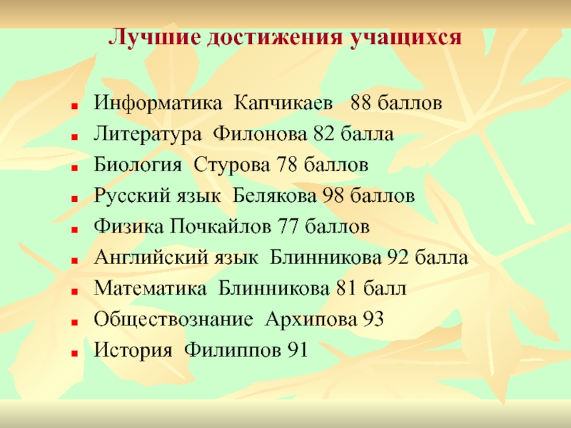 По результатам 4-х предметов ЕГЭ (275 баллов) – 28 место (из 127)