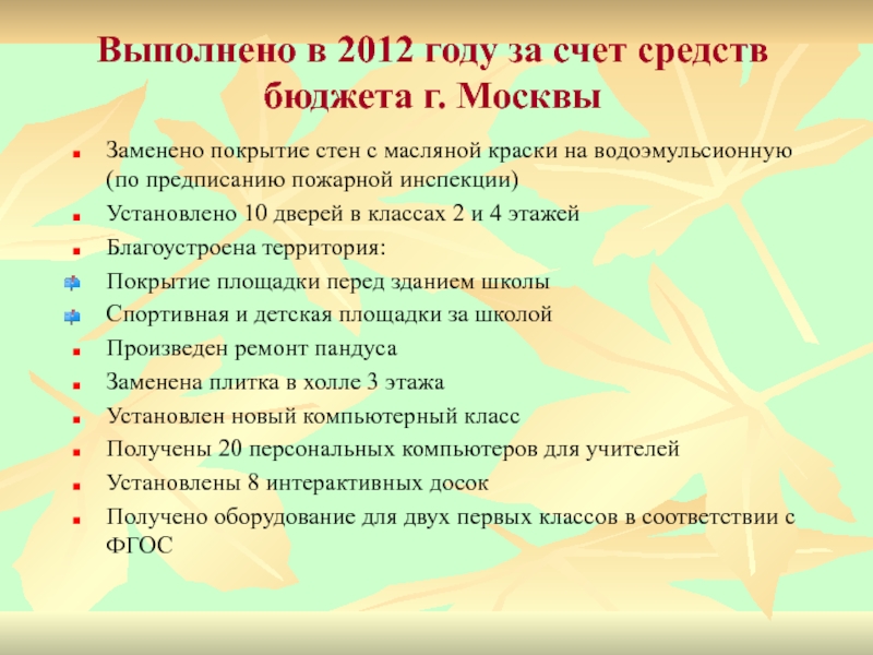 Слайд 37Выполнено в 2012 году за счет средств бюджета г. Москвы