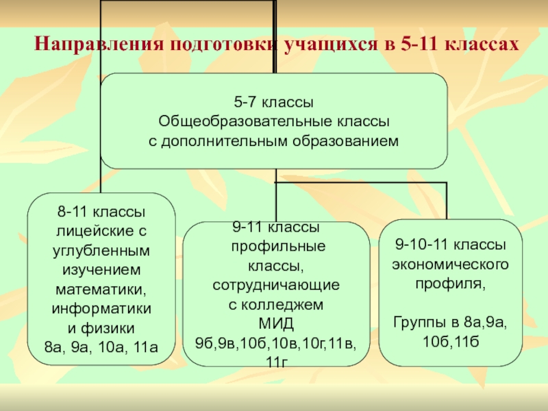 Слайд 21 Направления подготовки учащихся в 5-11 классах