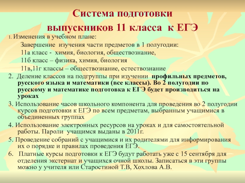 6. Платные курсы подготовки к ЕГЭ будут работать уже с 15 сентября для отделения экстернат и учащихся очной школы. Записаться в эти группы можно у учителя или Старостиной Т.В, Хохлова А.В.