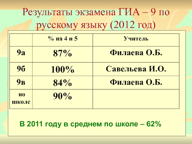 Результаты экзамена ГИА – 9 по русскому языку (2012 год)