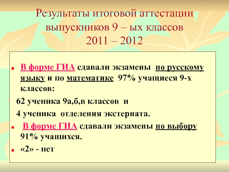 В форме ГИА сдавали экзамены по русскому языку и по математике