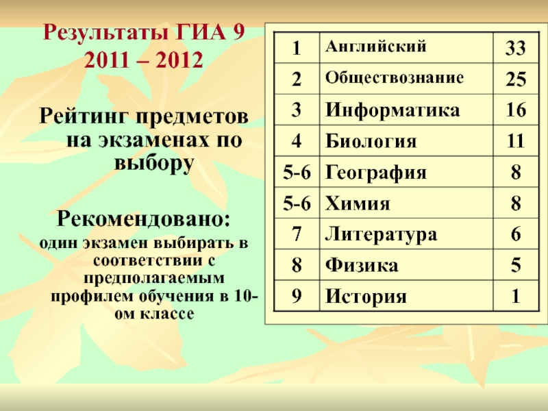 3. Использование часов школьного компонента для углубленного изучения предметов сдаваемых по выбору учащихся